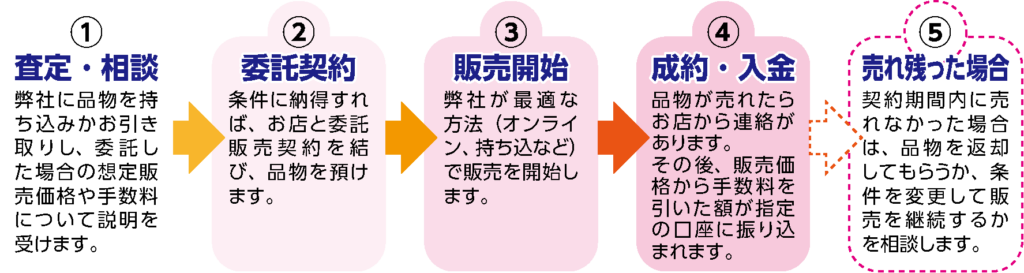 フリマアプリなどでの個人売買は、写真撮影、商品説明の作成、価格交渉、梱包、発送など、多くの手間と時間がかかります。委託買取なら、商品を預けるだけで、こうした面倒な作業をすべて弊社にお任せください!!