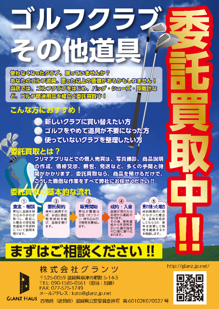 当店では、ゴルフクラブをはじめ、バッグ・シューズ・距離計など、ゴルフ関連用品を幅広く委託買取中!